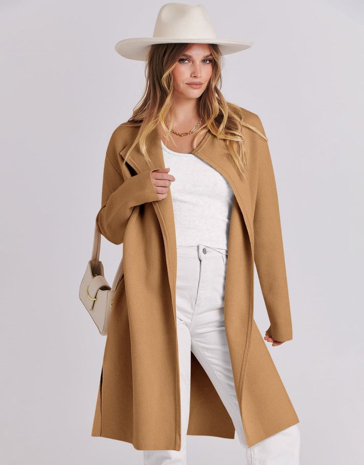 ANRABESS Women's Casual Long Sleeve Classy Draped Open Front Jackets Long Knitted Cardigan Sweater