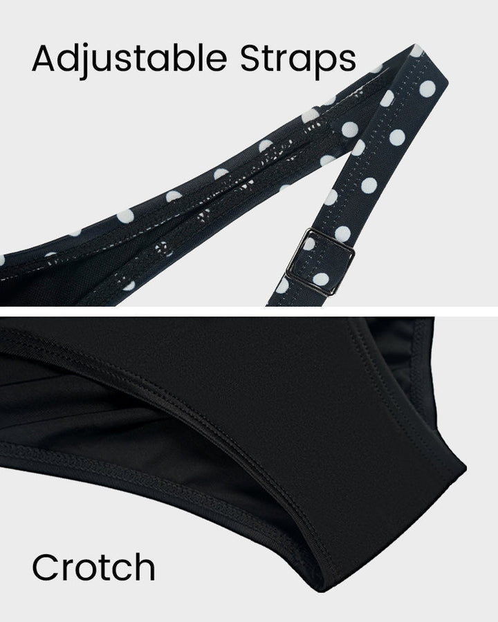 The timeless polka dot print adds a fun and playful touch, making this bikini a standout piece for any summer wardrobe.