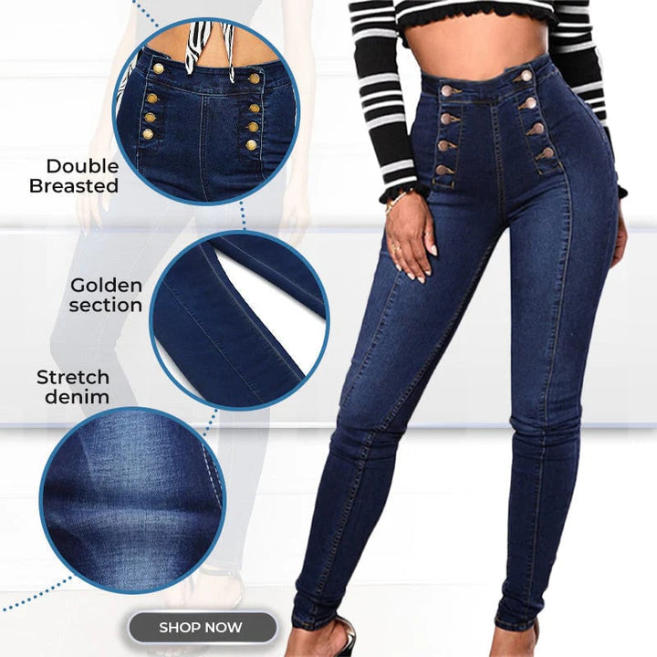 š„Double Breasted High Waist Skinny Jeans