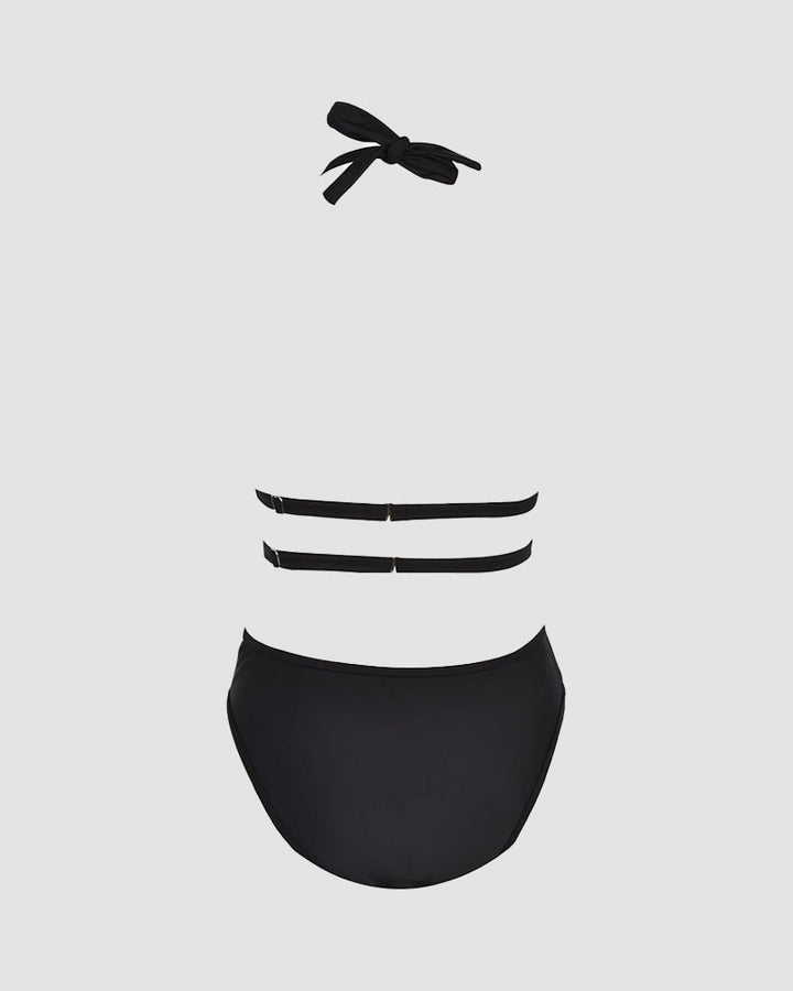 The halter neck ties allow for a customized fit, ensuring comfort and security during your activities.Flattering Fit